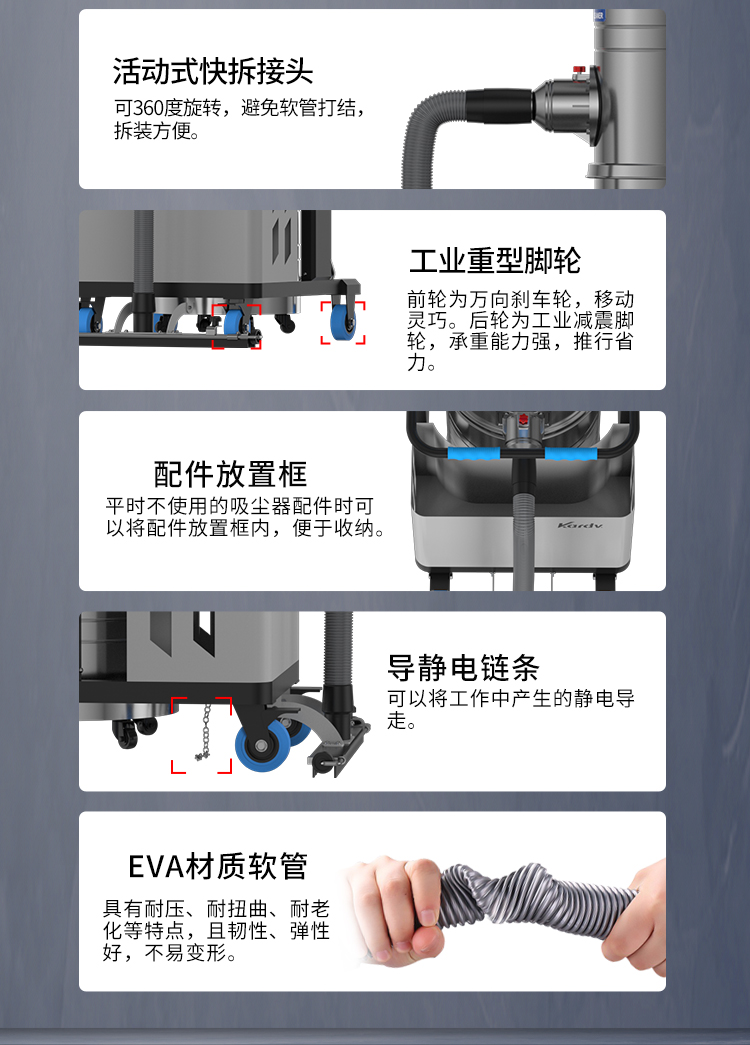 DL-3010BX是一款工業(yè)型的產(chǎn)品,每小時可以清理1300m2左右,3.6KW功率和100升的集塵桶,60cm寬的推吸扒頭,可邊推邊吸;上下分離桶,桶壁光滑易清理,分離桶上配有推手,清理垃圾時輕松方便。機器配有置物箱,方便放置一些配件和工具。適用于工廠、倉庫或建筑工地的清理。