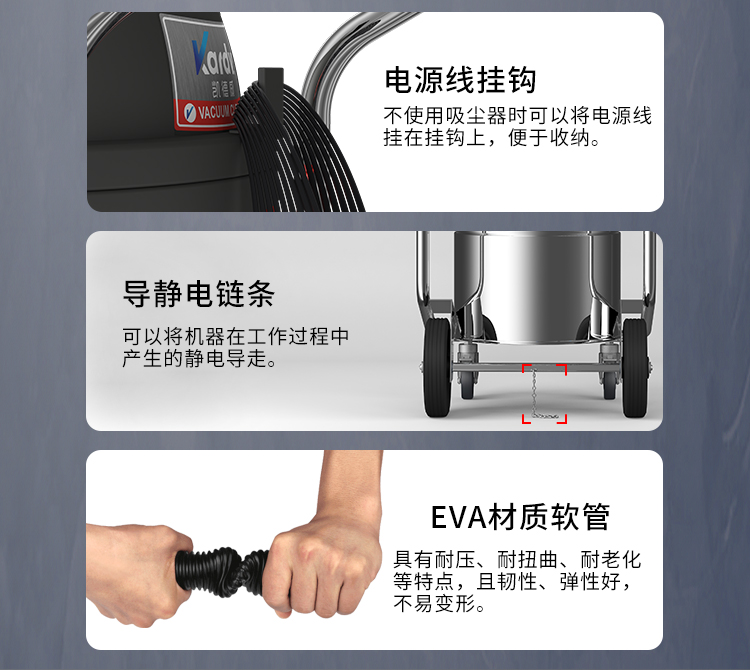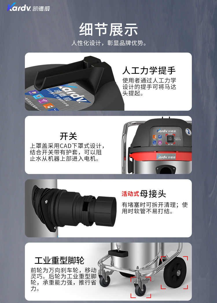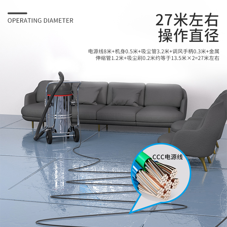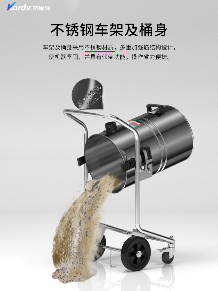 GS-1245是一款工商業(yè)型吸塵器,有可達(dá)45L左右的不銹鋼材質(zhì)制成的集塵桶,同時(shí)它配有前輪為萬向輪并帶剎車的不銹鋼車架使用起來靈活輕便。可以用在工業(yè)環(huán)境中,也可以使用在普通的商業(yè)、企業(yè)環(huán)境。