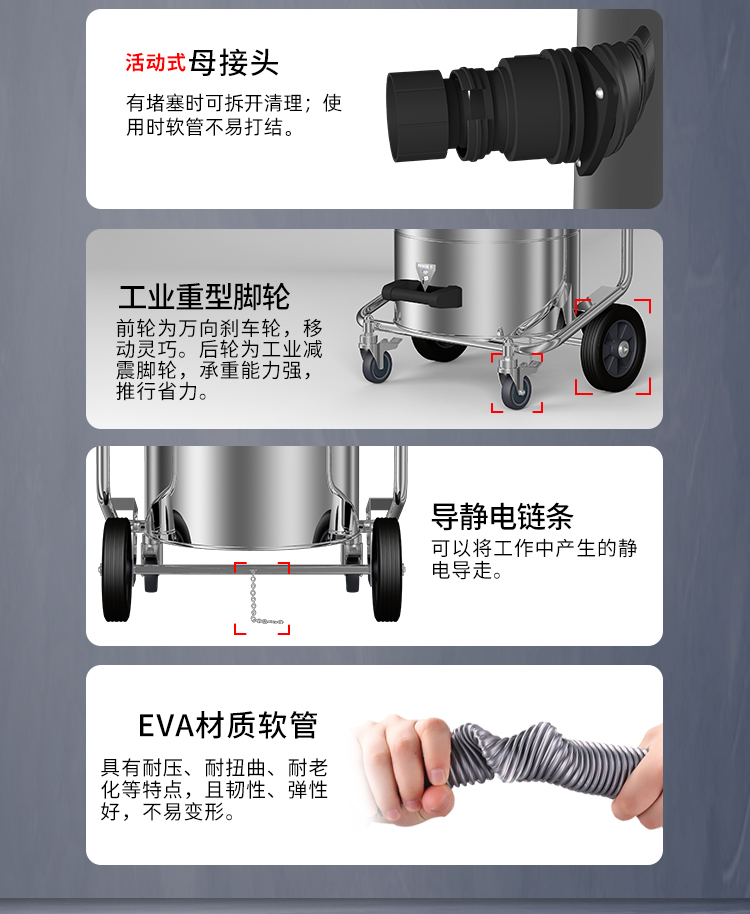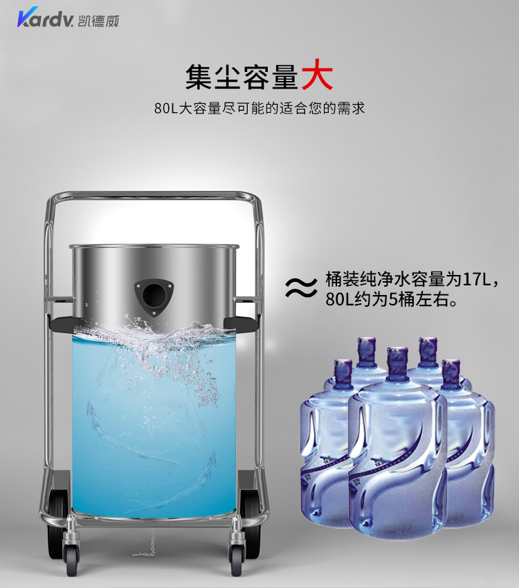 GS-3078B是一款工業(yè)型吸塵器,集塵桶為80L,為不銹鋼材質(zhì),配有不銹鋼車架,在移動時輕巧方便;可以用在工廠、倉庫或建筑工地等場所清理灰塵等,在商業(yè)環(huán)境中也可以使用。