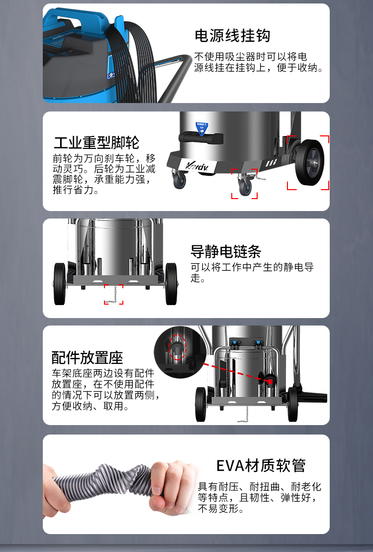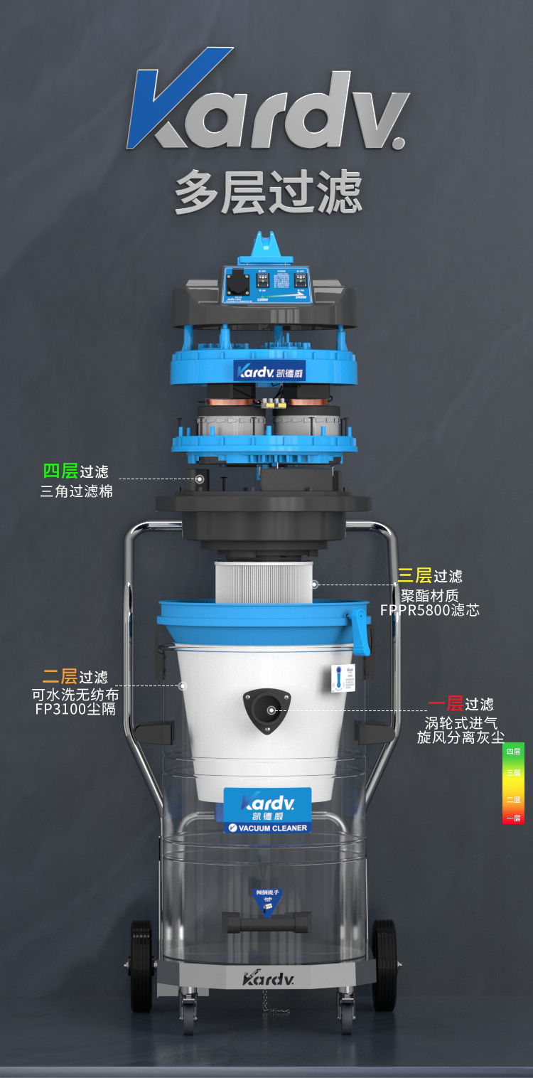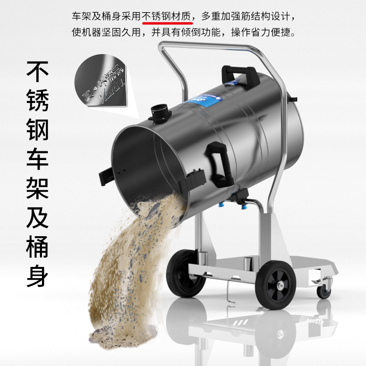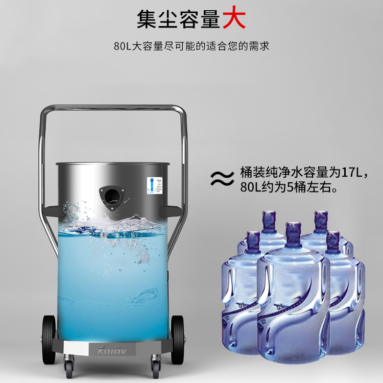 DL-2078B是一款工商業(yè)吸塵器,有2顆馬達,可單獨或聯(lián)合開啟;集塵桶為80L,為不銹鋼材質,配有不銹鋼車架,在移動時輕巧方便;配有手動晃動振塵,在使用的過程中,左右晃動振塵手柄就可以起到清理過濾器的作用。新款不銹鋼車架,美觀結實,具有收納配件功能,可以用在工廠、倉庫或建筑工地等場所清理灰塵等,在商業(yè)環(huán)境中也可以使用。
