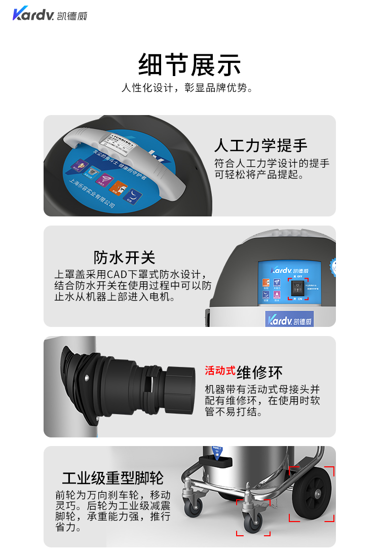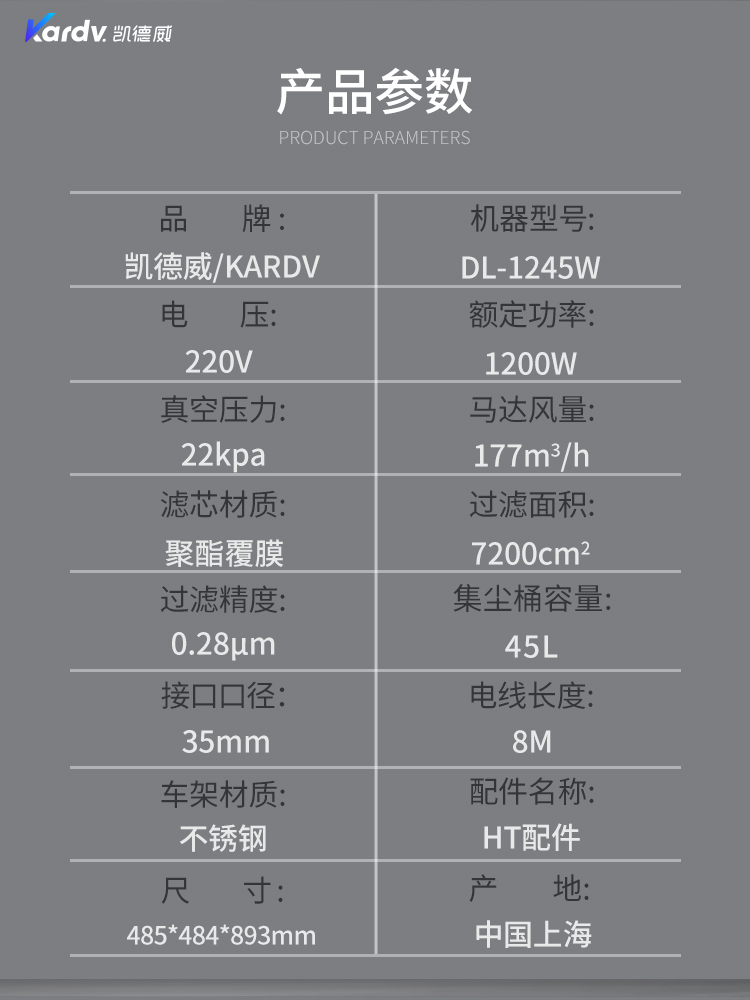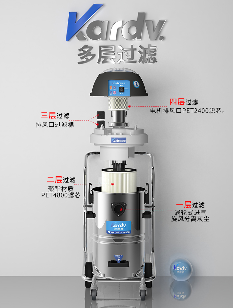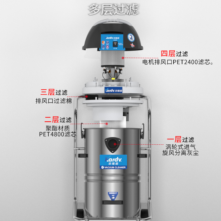 DL-1245W是一款工商業(yè)吸塵器,散熱上采用上下氣道分離,延長了排風的路徑及時間,所產(chǎn)生的聲音相對比普通的吸塵器聲音??;有可達45L左右的不銹鋼材質(zhì)制成的集塵桶,同時它配有前輪為萬向輪并帶剎車的不銹鋼車架使用起來靈活輕便;多層過濾裝置,使排出來的空氣相對潔凈;可參考使用在實驗室,無塵車間,凈化車間等環(huán)境中。
