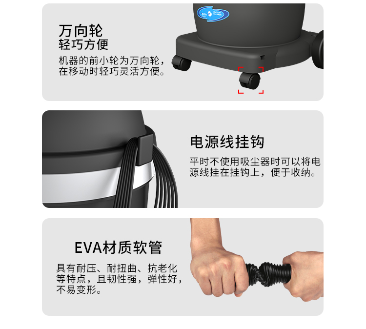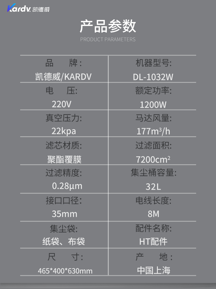 DL-1032W是一款工商業(yè)用吸塵器,集塵桶為32L,配有置物架,可以放置工具和配件,方便使用;散熱上采用上下氣道分離設計,排風上借鑒了汽車排氣管的消音原理,延長了排風的路徑及時間,所以產生的聲音相對要比普通的吸塵器聲音??;多層過濾裝置,使排出來的空氣相對潔凈;可以用在工業(yè)實驗室、無塵車間、凈化車間環(huán)境中,也可以使用在普通的商業(yè)、企業(yè)的辦公環(huán)境。