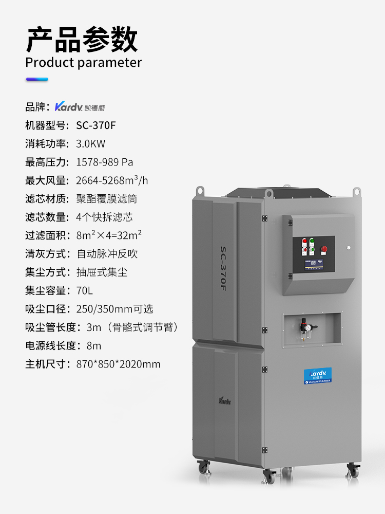 凱德威工業(yè)除塵器SC-370,工廠(chǎng)車(chē)間用。可參考實(shí)用場(chǎng)所:化工制藥,食品加工,冶金、鑄造、機(jī)械加工、建材等行業(yè)。